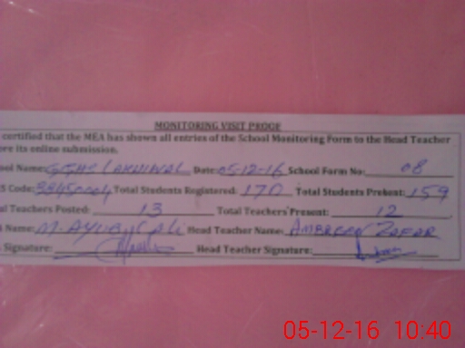 | Name: NA**** KA**** Designation: (School Headmaster's/Headmistress's) H Mrs Phone/Cell Number: 03**** |