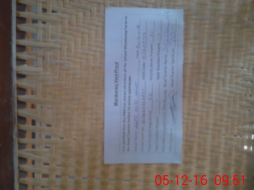 | School Visited by School Health & Nutrition Supervisor (No. of Visits) | 1 | Name1: | Tahir | Name2: | Nil |