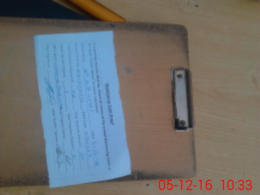 | Monitoring Date: 05-12-2016 | Start Time: 05-12-2016 10:13 AM | End Time: 05-12-2016 10:35 AM | Name of MEA: Mu**** Sa**** Ul**** Sa**** | |