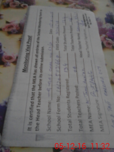 | Certified that this School was Inspected by the Undersigned MEA/DMO Today and the Information Stated Above is as Per Record. | |||||