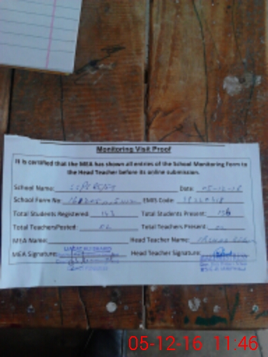 | Attendance Register | Head Teacher | MEA with School | Visit Proof |