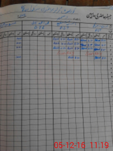 | CNIC | Full Name | Designation | R/C | Absence During Last Calender Month |