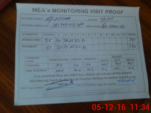 | Attendance Register | Head Teacher | MEA with School | Visit Proof |