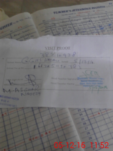 | Attendance Register | Head Teacher | MEA with School | Visit Proof |