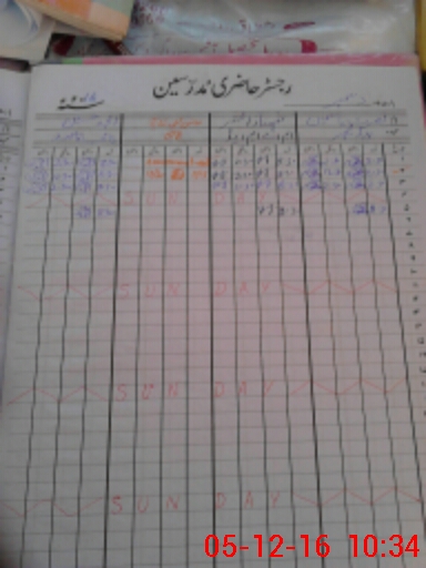 | CNIC | Full Name | Designation | R/C | Absence During Last Calender Month |