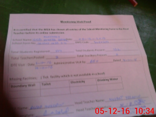 | Certified that this School was Inspected by the Undersigned MEA/DMO Today and the Information Stated Above is as Per Record. | |||||