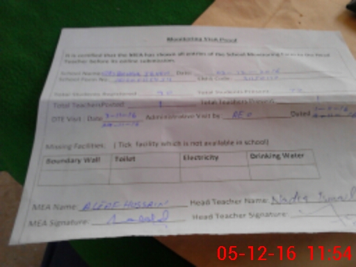 | Attendance Register | Head Teacher | MEA with School | Visit Proof |