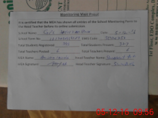 | Attendance Register | Head Teacher | MEA with School | Visit Proof |
