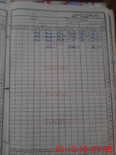 | CNIC | Full Name | Designation | R/C | Absence During Last Calender Month |