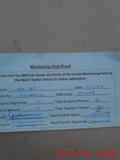 | Attendance Register | Head Teacher | MEA with School | Visit Proof |