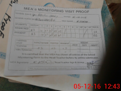 | Attendance Register | Head Teacher | MEA with School | Visit Proof |