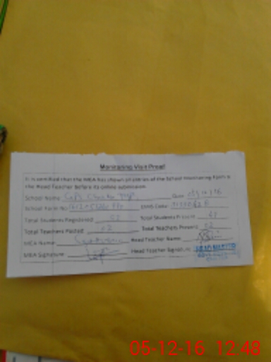 | Attendance Register | Head Teacher | MEA with School | Visit Proof |