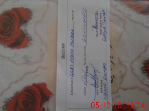 | School Visited by School Health & Nutrition Supervisor (No. of Visits) | 1 | Name1: | Imtiaz Ahmad Watto | Name2: | |