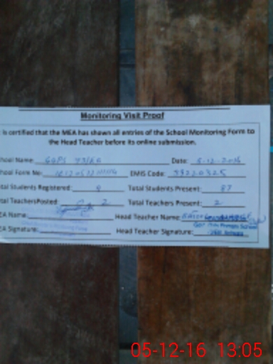 | EMIS Code: 39220325 | Name of School: GGPS 73 EB | |||