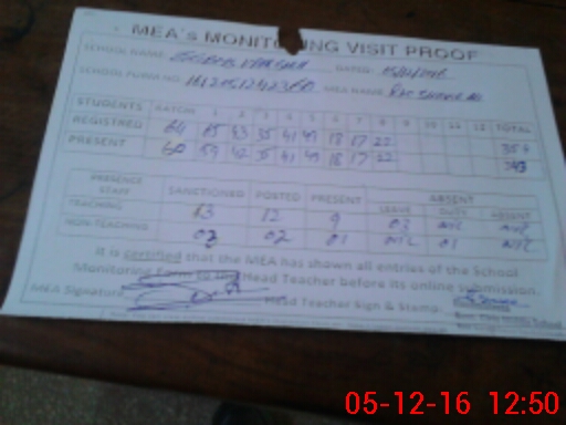 | Certified that this School was Inspected by the Undersigned MEA/DMO Today and the Information Stated Above is as Per Record. | |||||