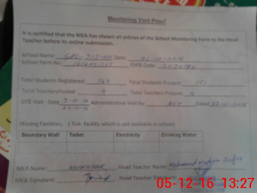 | EMIS Code: 31130142 | Name of School: GPS CHAK 313/HR | |||