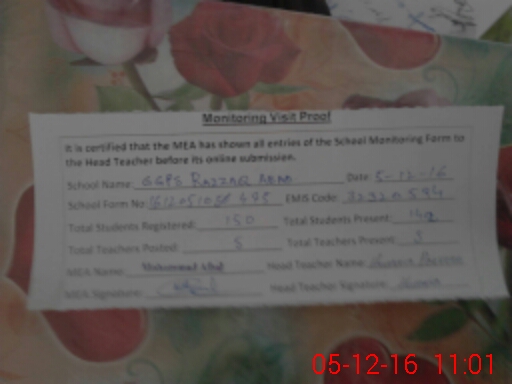 | EMIS Code: 32320594 | Name of School: GGPS RAZZAQ ABAD | |||