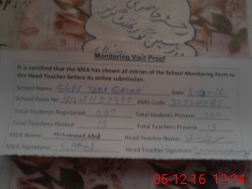 | EMIS Code: 32320085 | Name of School: GGHS TIBBA QAZIAN | |||