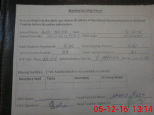| Certified that this School was Inspected by the Undersigned MEA/DMO Today and the Information Stated Above is as Per Record. | |||||