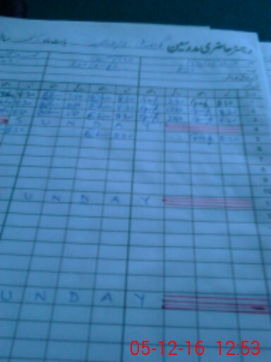 | CNIC | Full Name | Designation | R/C | Absence During Last Calender Month |