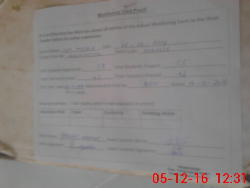 | Attendance Register | Head Teacher | MEA with School | Visit Proof |