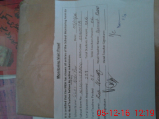 | Attendance Register | Head Teacher | MEA with School | Visit Proof |
