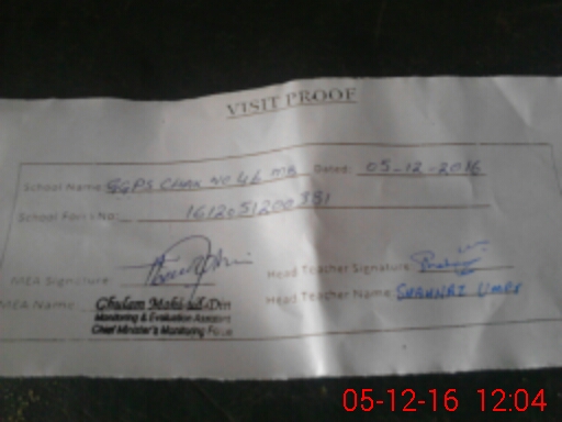 | EMIS Code: 38210622 | Name of School: GGPS CHAK NO 46 MB | |||