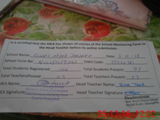 | EMIS Code: 39220361 | Name of School: GMPS 26 KB JHAJHRA | |||