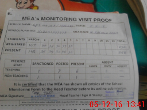 | Attendance Register | Head Teacher | MEA with School | Visit Proof |