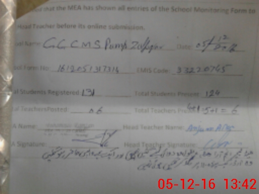 | EMIS Code: 33220745 | Name of School: GGCMS PUMP ZULFIQAR | |||