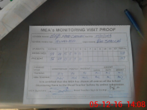 | Attendance Register | Head Teacher | MEA with School | Visit Proof |