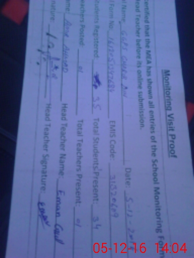 | Attendance Register | Head Teacher | MEA with School | Visit Proof |