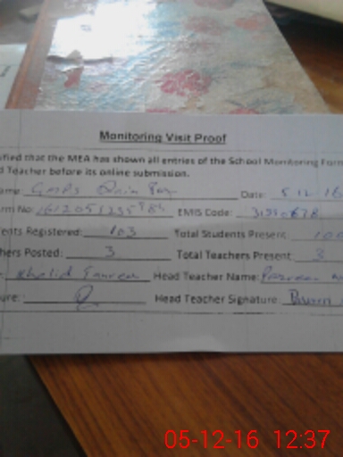 | Attendance Register | Head Teacher | MEA with School | Visit Proof |