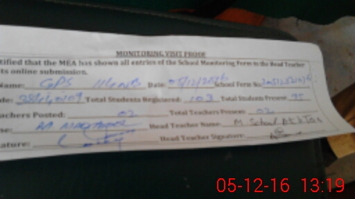 | Attendance Register | Head Teacher | MEA with School | Visit Proof |