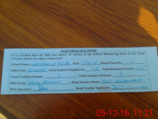 | Attendance Register | Head Teacher | MEA with School | Visit Proof |