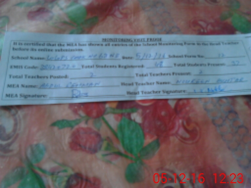 | Attendance Register | Head Teacher | MEA with School | Visit Proof |