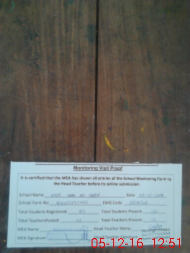 | Attendance Register | Head Teacher | MEA with School | Visit Proof |