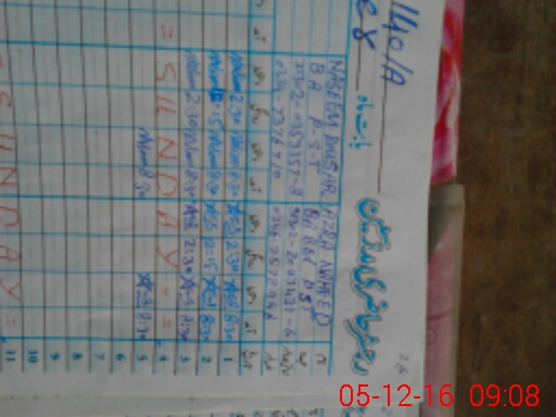 | CNIC | Full Name | Designation | R/C | Absence During Last Calender Month |