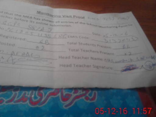 | Attendance Register | Head Teacher | MEA with School | Visit Proof |