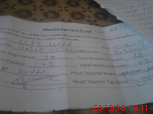 | Attendance Register | Head Teacher | MEA with School | Visit Proof |
