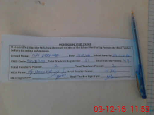 | Certified that this School was Inspected by the Undersigned MEA/DMO Today and the Information Stated Above is as Per Record. | |||||