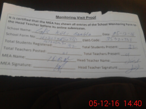 | Attendance Register | Head Teacher | MEA with School | Visit Proof |
