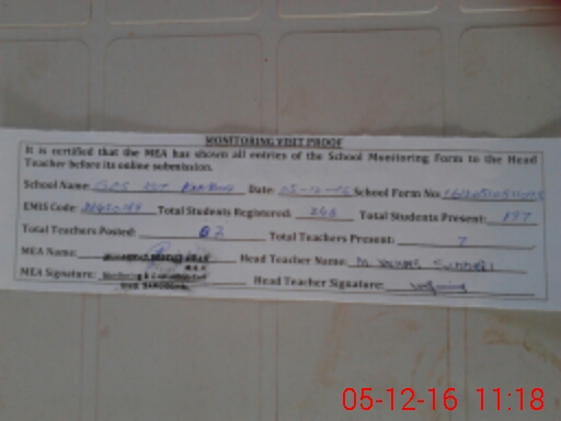 | Attendance Register | Head Teacher | MEA with School | Visit Proof |