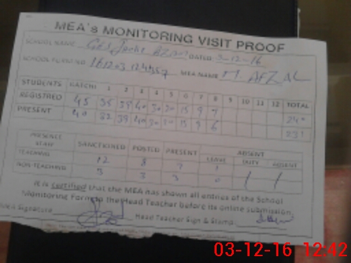 | Certified that this School was Inspected by the Undersigned MEA/DMO Today and the Information Stated Above is as Per Record. | |||||