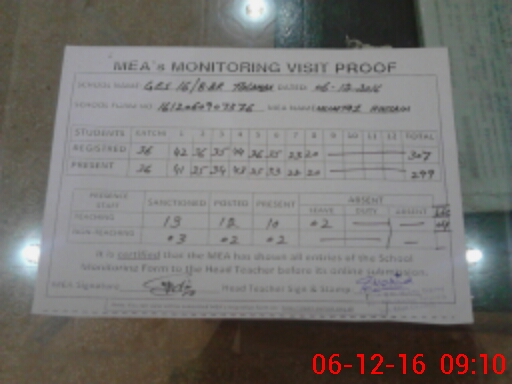 | Attendance Register | Head Teacher | MEA with School | Visit Proof |
