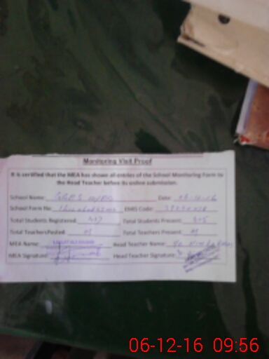 | Certified that this School was Inspected by the Undersigned MEA/DMO Today and the Information Stated Above is as Per Record. | |||||