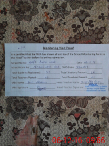 | Attendance Register | Head Teacher | MEA with School | Visit Proof |
