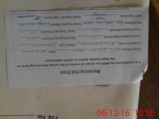 | Attendance Register | Head Teacher | MEA with School | Visit Proof |