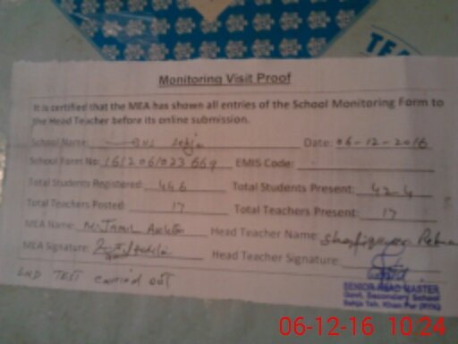 | Certified that this School was Inspected by the Undersigned MEA/DMO Today and the Information Stated Above is as Per Record. | |||||