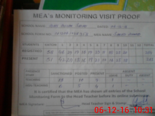 | Certified that this School was Inspected by the Undersigned MEA/DMO Today and the Information Stated Above is as Per Record. | |||||